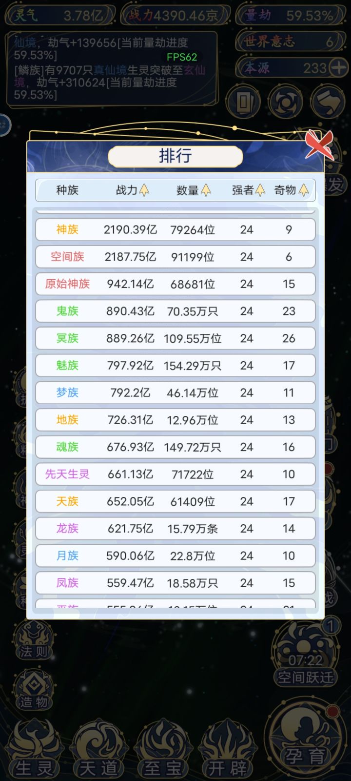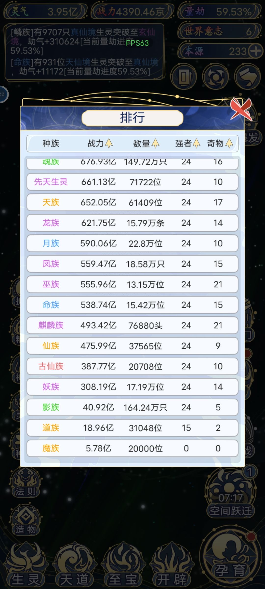 首先要明白,本游戏人族在开启福佑之后,层数最高,而且基数最大,所以我把人族作为主要提升种族,资源倾斜。