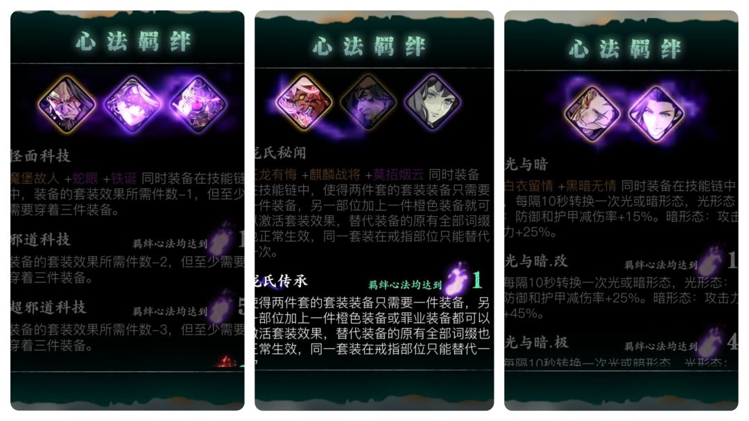 魔堡羁绊:本游戏核心玩法之一 — 抽魔宝。在没有狂龙羁绊前,魔宝三卡必须在主心法槽,否则不生效。