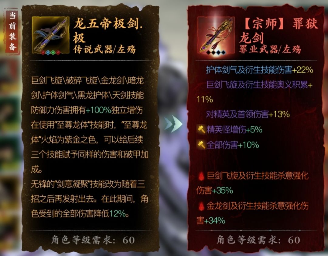 词缀排序:爆伤、精英伤、金龙伤、全伤、飞旋伤、护体伤。最少要有前四种词条,再升宗师。