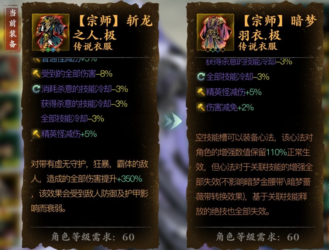 两种衣服各自宗师属性