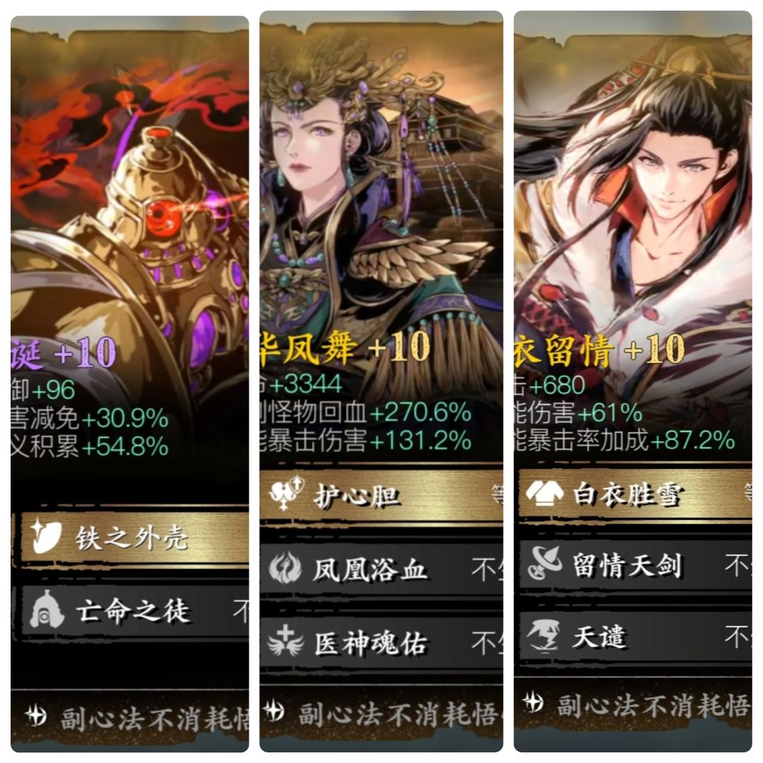 副心法可生效卡牌一览: