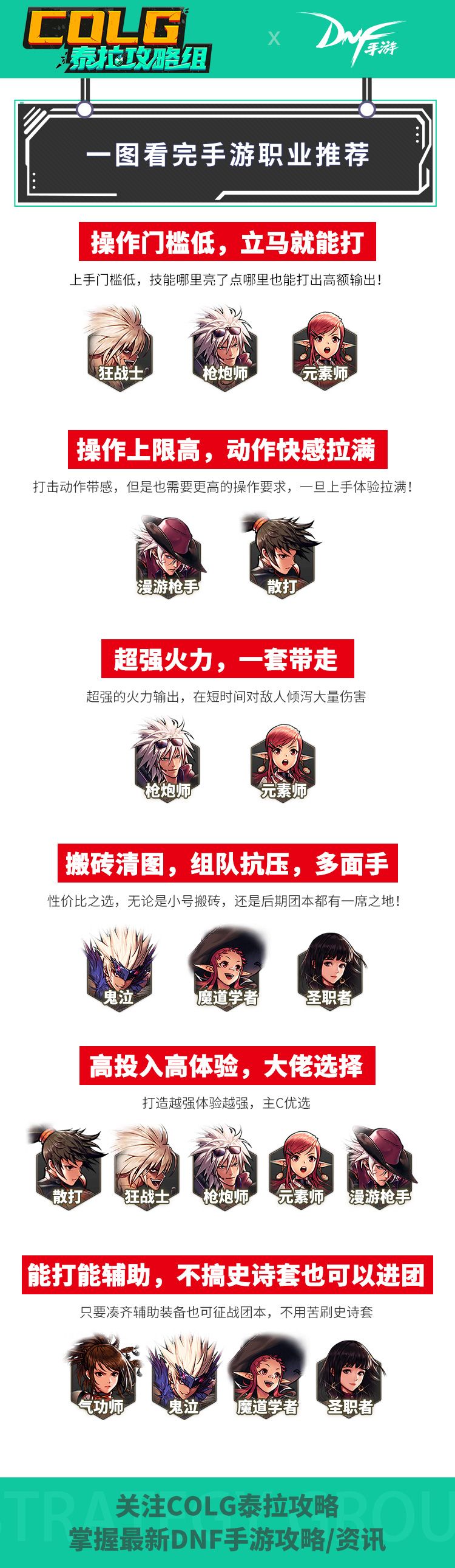 DNF手游开服9大职业如何选择,一图带你了解他们的特性