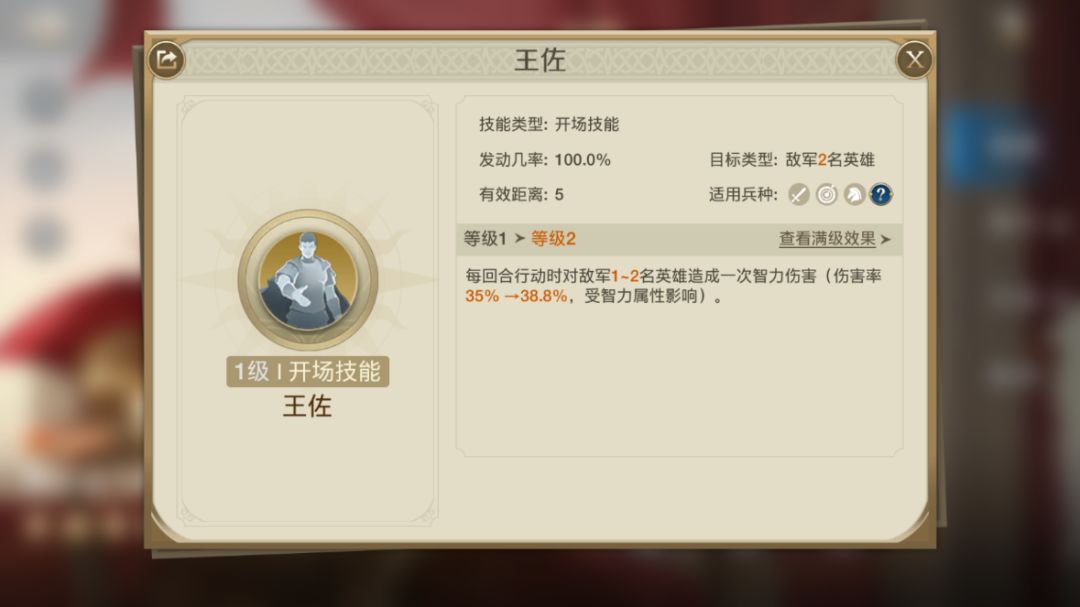 雷庇达乌斯的专属技能【王佐】:每回合行动时对敌军两名英雄造成一次智力伤害。