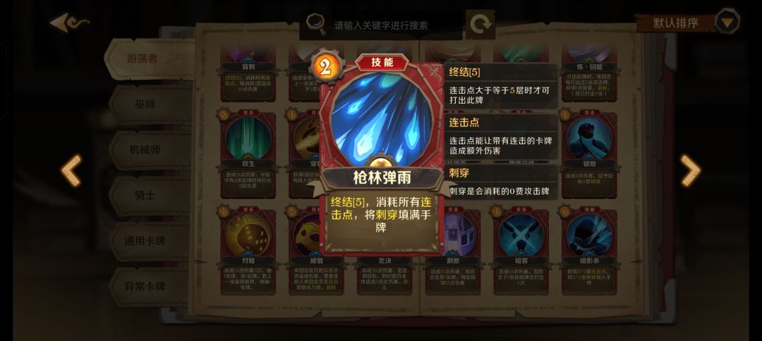 过牌卡主要有诡计,蓄势,滑翔,快速上膛,志在必得,枪林弹雨
