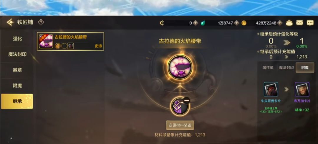 5️⃣第五个,出史诗后解除的大词条封印,毕业的记得留着,是可以继承的。防具物理职业是力量,魔法职业是智力。首饰留自己要走的属强,前期有力智也先留着,武器5%增伤,其次七属强,注意继承的时候,这个附魔继承勾选的话,被继承的装备如果也有附魔卡片是会被顶替的,不会互换,注意别把毕业附魔给顶没了。