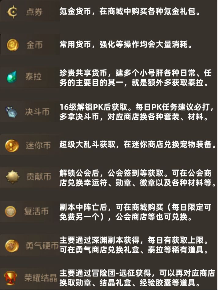 DNF手游全货币获取&兑换一览