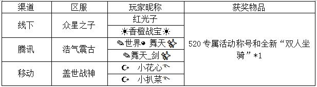 《世界OL》520活动获奖名单