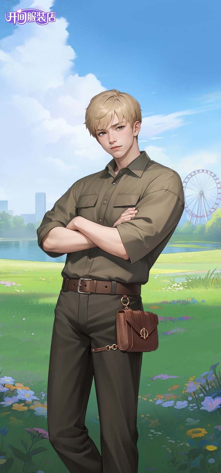 他那一头金色的短发,就像夏日的阳光洒满整个店面,温暖而耀眼。小开拥有一双淡褐色的眼睛,那双眼睛中透出的光芒,仿佛能洞察人心,让人不自觉地信任他。小开总是穿着那件棕色的衬衫,衬衫的领口微微敞开,露出他健硕的锁骨,显得既随性又不失风度。他的黑色裤子贴身而不紧绷,恰到好处地展现出他挺拔的身材。而那挂在腰间的棕色小挎包,不仅是他的时尚配饰,更是他随身携带“神器”的法宝,总能在关键时刻发挥出大作用。
