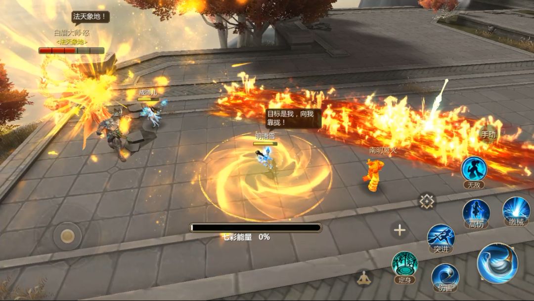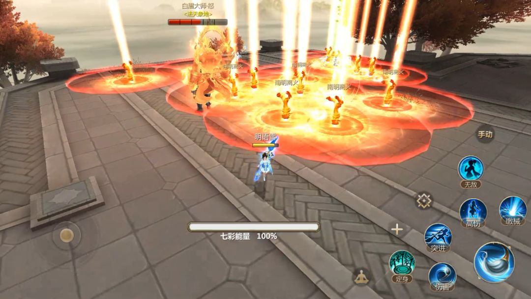 应对方法:躲开红圈提示的范围,南明离火需要将结合【妙一神剑】技能处理。