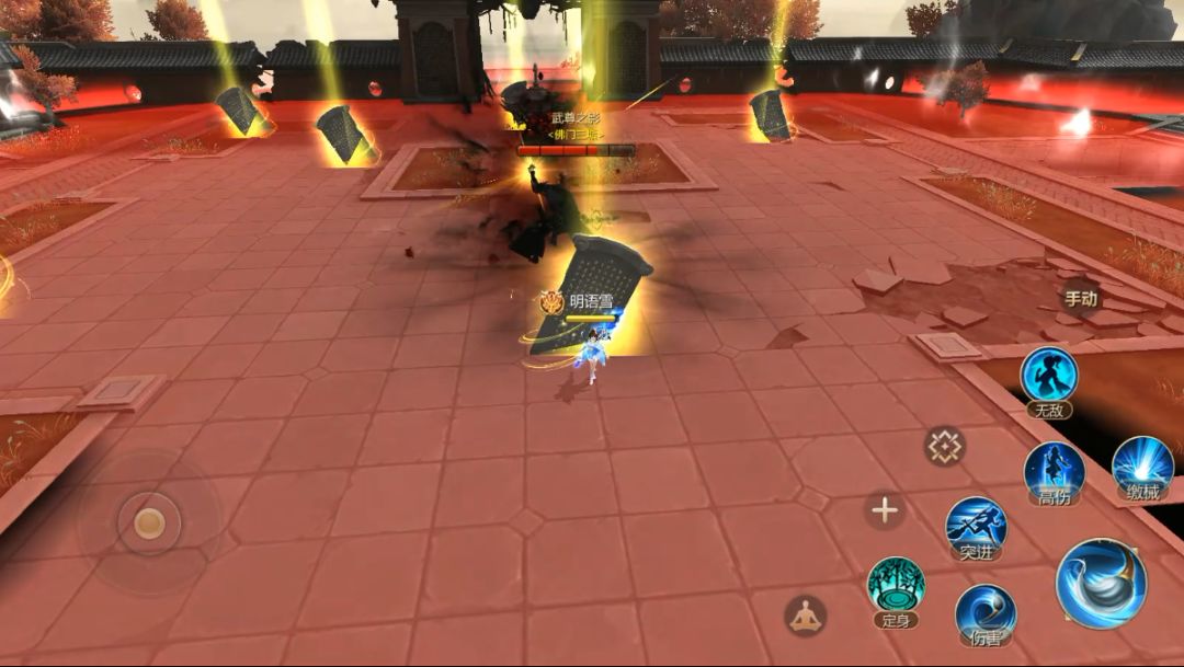 技能效果:武尊环绕自身舞动佛棍进入预警状态,数秒后击飞在其预警区域内的玩家,同时造成一定的伤害。