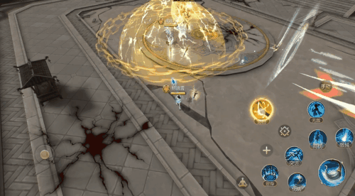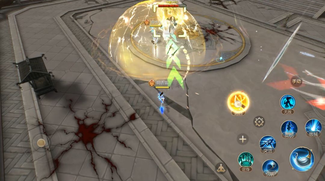 技能效果:白云大师猛击地面,同时施放圆形剑阵,产生圆形伤害。