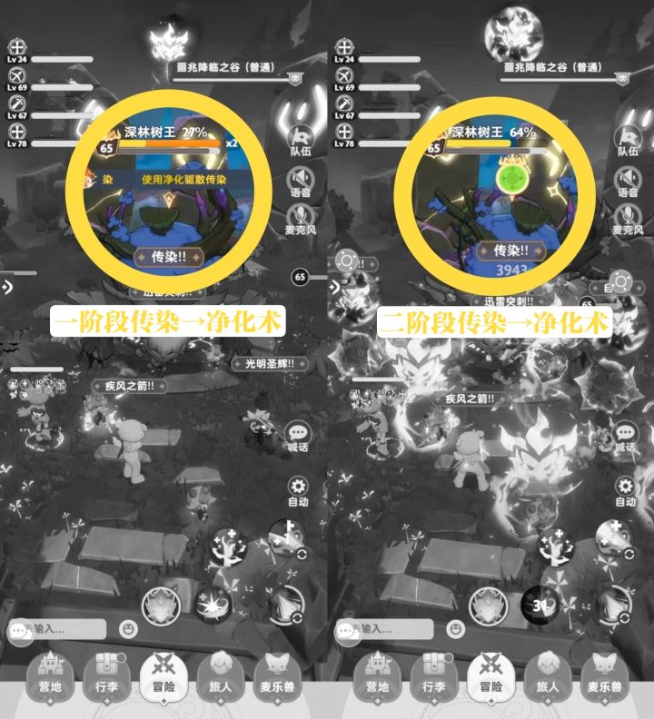 3.boss传染(二阶段没有麦芬提示,要注意看灰条和字,灰条结束后放技能)→净化术