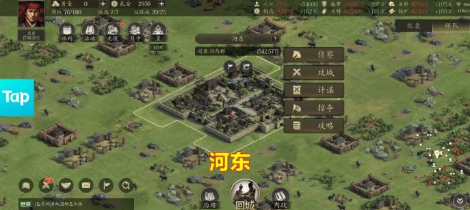 河东,这就是关羽的正牌老家,对标如今的山西运城永济县,尽管在游戏里只是县城级别,却是三国迷们都饶有兴趣的地方。坐标为(542,577),周边的山寨据点和资源区非常丰富,肉眼可见比其他县城都要繁华一些,难怪二爷怒杀了地主以后跑路卖起了绿色食品,当时这一代横行霸道的人确实不少。