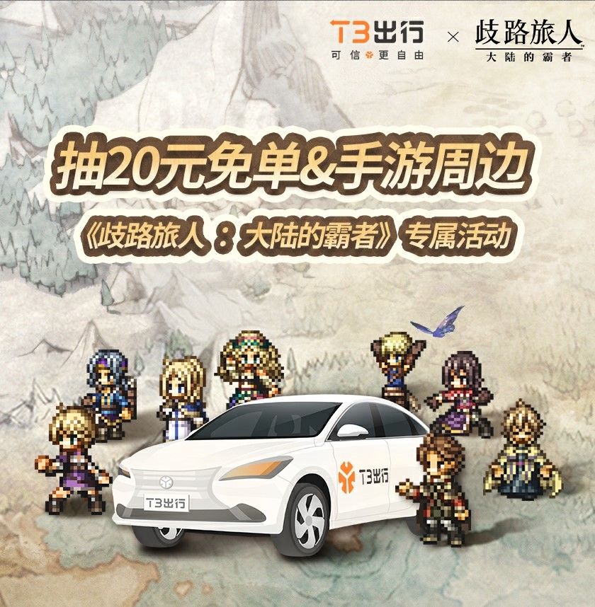 即日起至6月中旬,《歧路旅人:大陆的霸者》携手T3出行开启联动活动,带你踏上未知的征程!在奥鲁斯特拉大陆之外的世界,旅人们也别忘了出发,去追寻远方