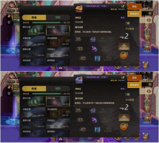 在升级路上,满足刷图评分即可领取武器礼盒与防具礼盒,且开启的装备强化数值均为+7,该装备即可轻松应对升级所面临的地下城副本,则无需额外强化造成炉岩碳和金币的浪费