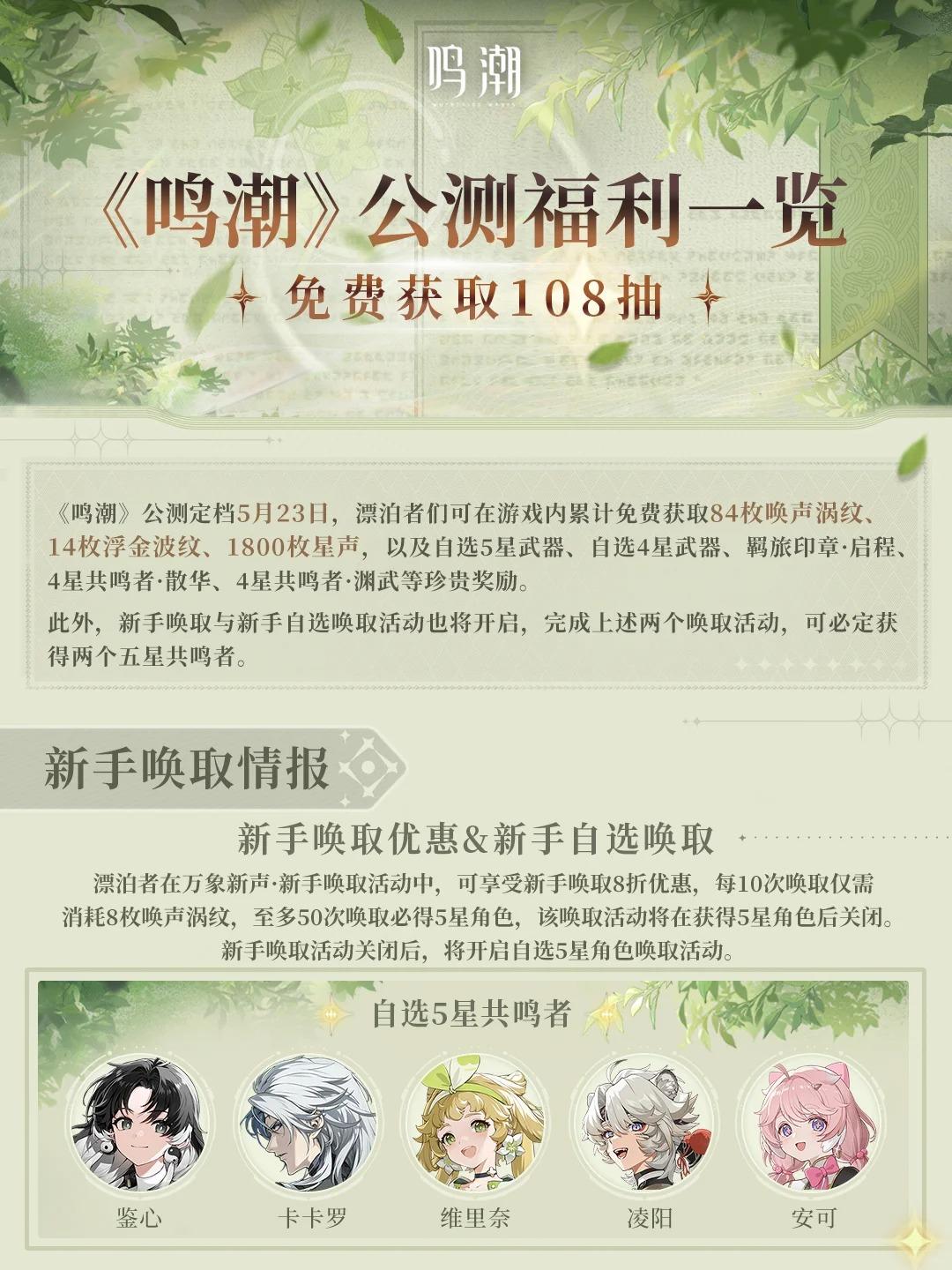 ☸️欢迎漂泊者查阅本次公测前瞻特别通讯的重要信息!《鸣潮》声骸召唤活动已开启,参与活动获取5星「声骸」「星声」以及各种奖励!