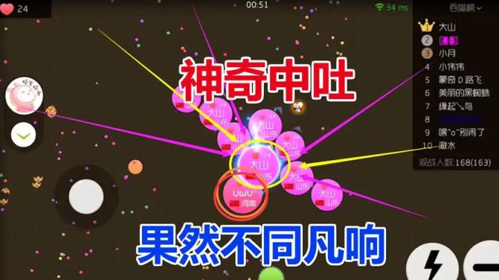 先中吐,意思就是小伙伴们分身后,点击一下屏幕中间,然后吐球;中吐点一下后,往要交叉吐的方向,手杆只移动一半吐球,这就是交叉吐了。看着比较简单,但是需要自己先练习一段时间形成肌肉记忆,后期就会很容易了。