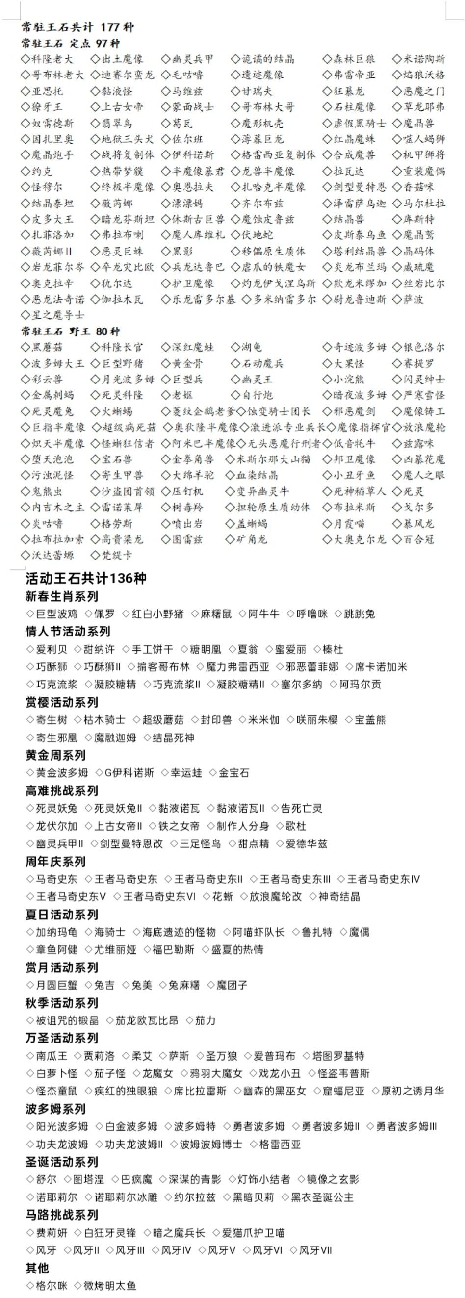 截止至万圣第八章的全王石收集一览