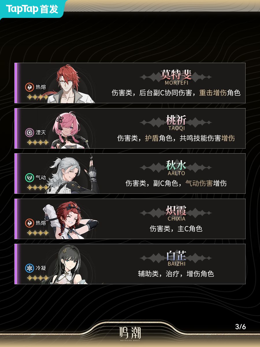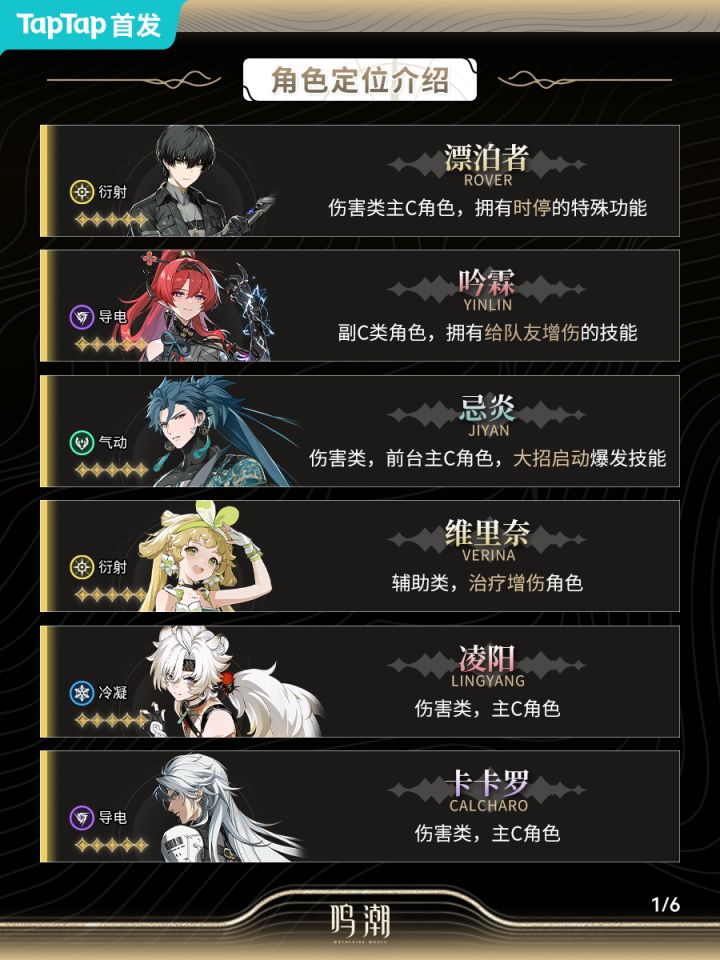 我们根据三测的数据总结了所有角色的定位,方便大家快速了解各个角色用法。