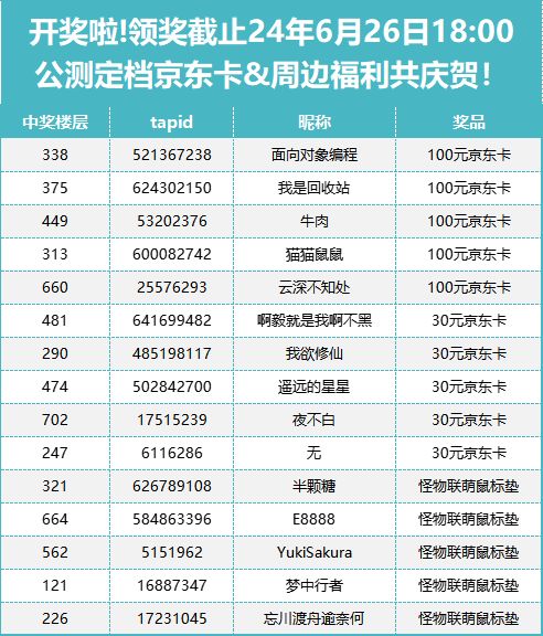 3.每个tapID只有一次获奖机会,奖励按照价值最高档发放