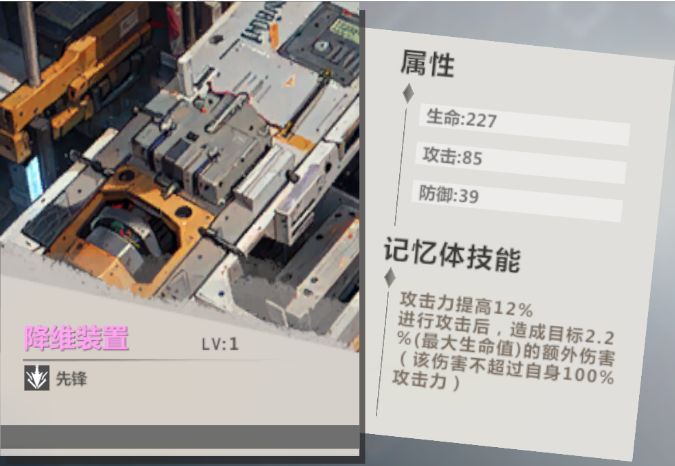 这是一个常驻卡池的橙色记忆体,是[蝉鸣]的专武,常态提供攻击力加成,在自身存在【增益】效果时还能提升暴击伤害。对舞乙来说,舞乙的[剑意]效果恰好就属于【增益】效果,也能吃到这部分的暴击伤害加成,也很不错。 推荐四:紫色记忆体「降维装置(先锋)」