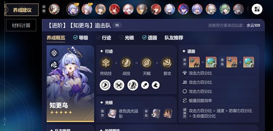 开拓者可以使用「养成建议」快速查询针对角色等级行迹、光锥遗器、队友推荐等方面的培养建议,并查看已拥有角色在当前养成方案下的培养进度。