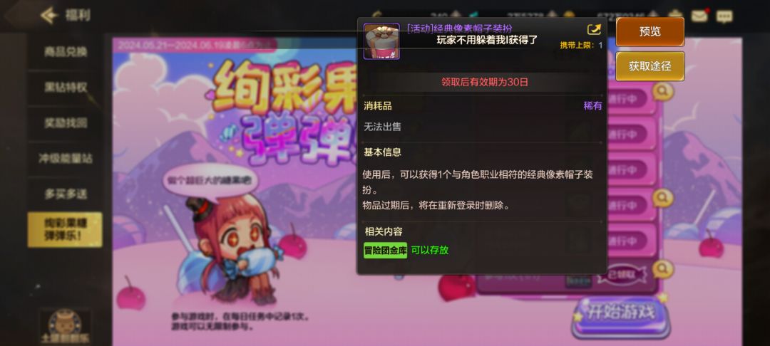 点击“福利”找到最下面得“炫彩糖果”活动,进去随便点游玩就可以,在第七天可以领取到经典像素头了