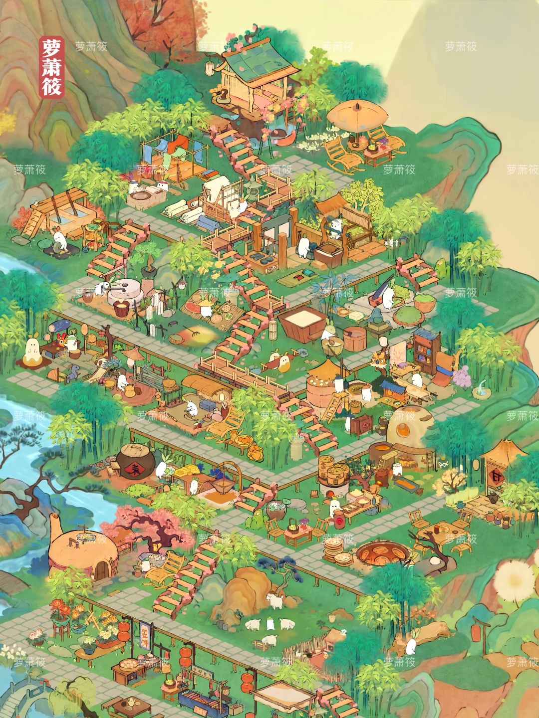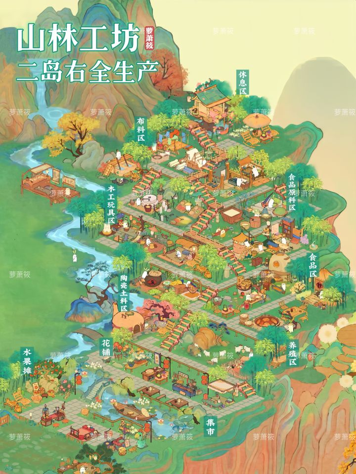 区域划分:集市区 养殖区 陶瓷土料区 食品区 食品