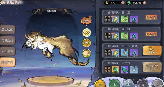 后山阵灵不仅能获得灵阵拓片,更能直接获得2、3级灵阵。通关奖励合计大约450个拓片,外加各属性154个1级【这部分资源足够完成①阶段目标的2/3了】,之后每天扫荡可以获得6个1级,花费450玉可以额外获得6个1级(2、3级已换算为1级)。月积年累,终有一日我们能做出9级灵阵!