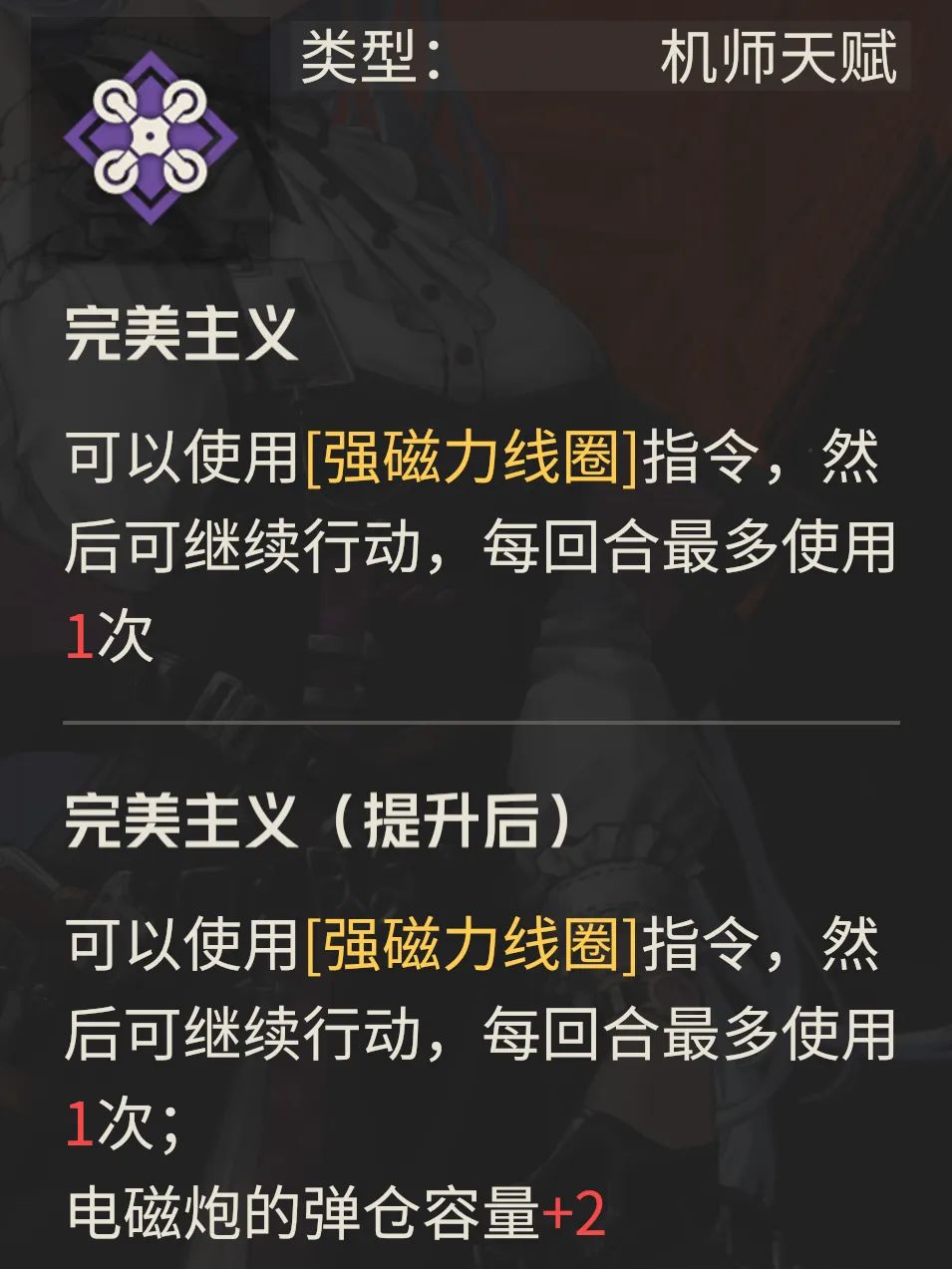 那么就跟之前上线的提费斯一样,菲娅的天赋就几乎决定了她绝大部分的玩法,这个“强磁力线圈”不仅可以直角90°偏移电磁炮和喷火器等范围输出武器的攻击,同时在高练度下还能实现斜向的偏移输出,虽然比较吃不同关卡中敌人的站位,但维一个人认为这个设定还是挺有意思的,不过其最大的问题在于:
