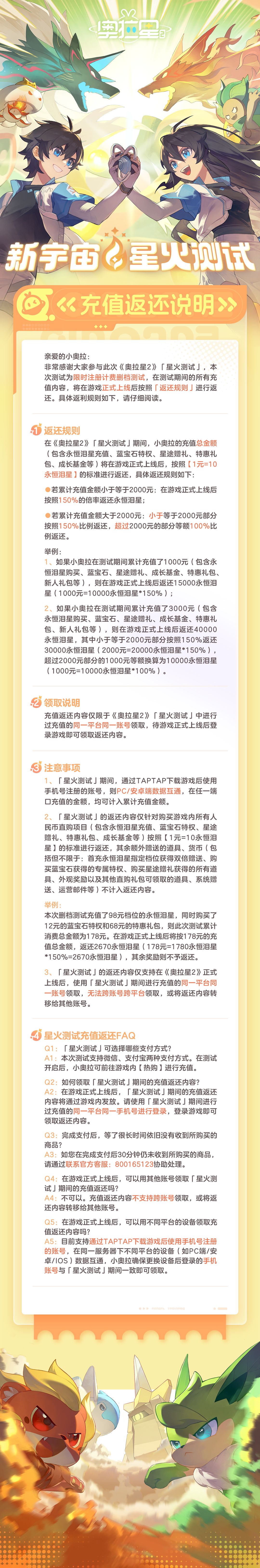 有关本次测试的详细说明以及充值返利的规则情况
