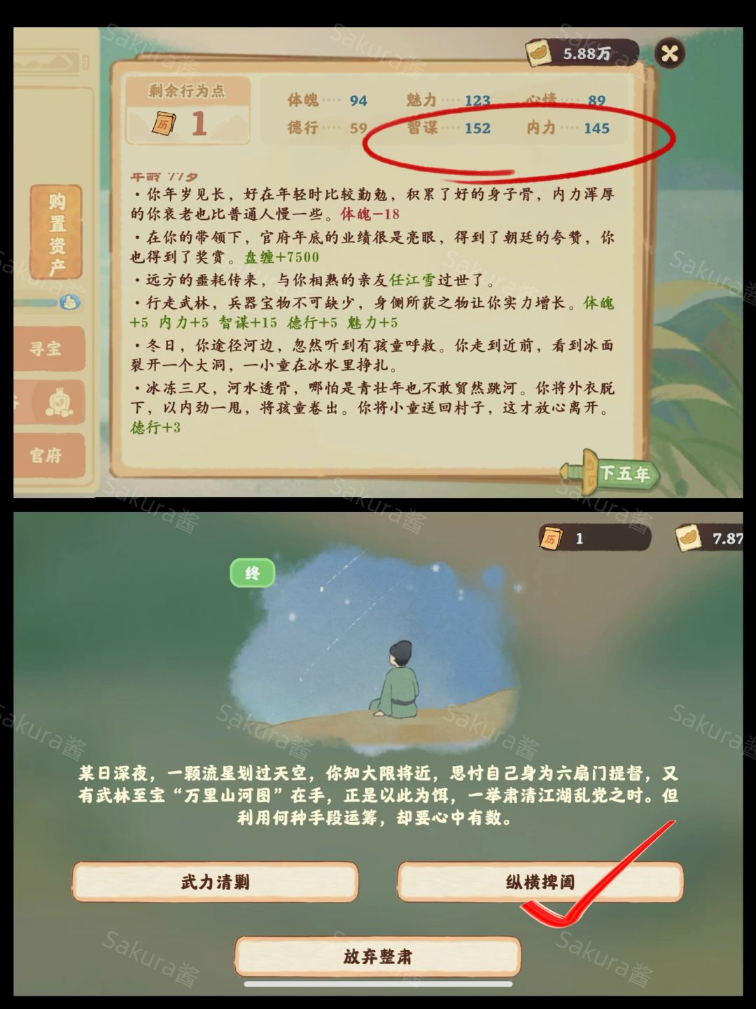 ④记得买装备提升智谋(内力可以选练武-打坐)