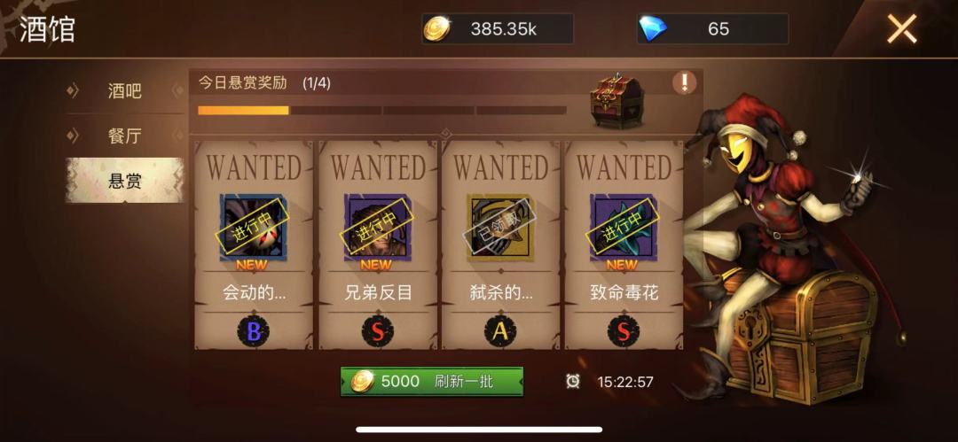 打完实验室的剧情1,这个时候雷米差不多可以下了,我们可以获取一个更适合开荒的英雄,注意我们角色头像下面的骷髅头旗帜,这里的悬赏任务