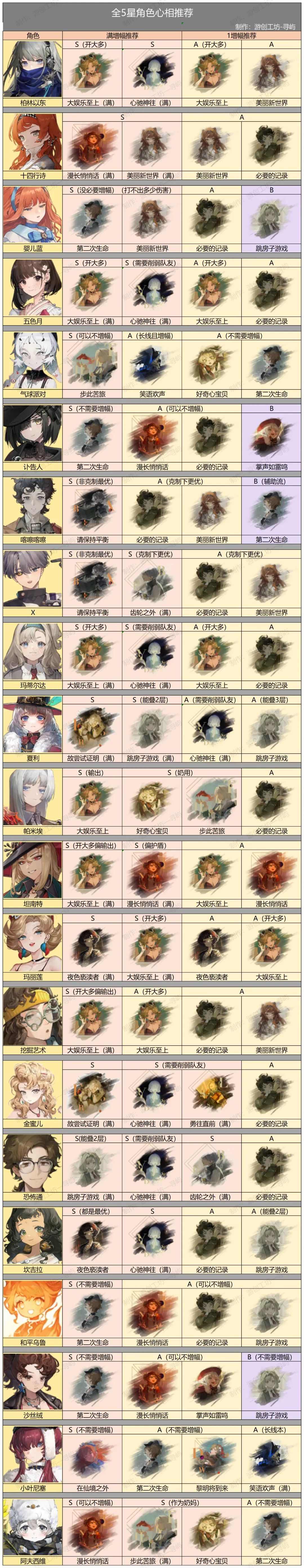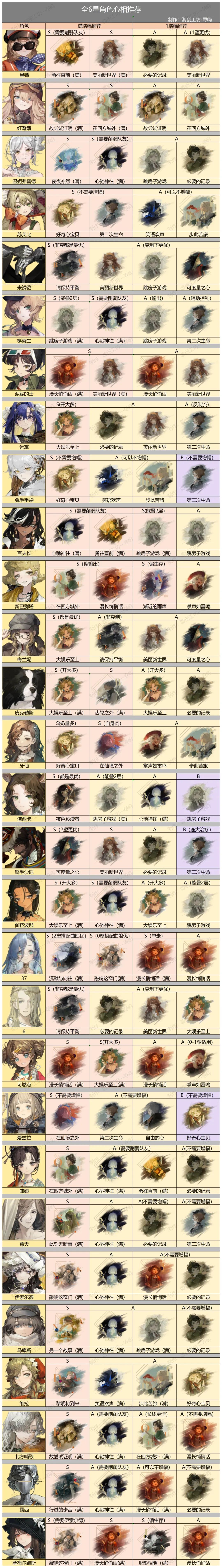 【1.9版本全6星、5星角色心相推荐】