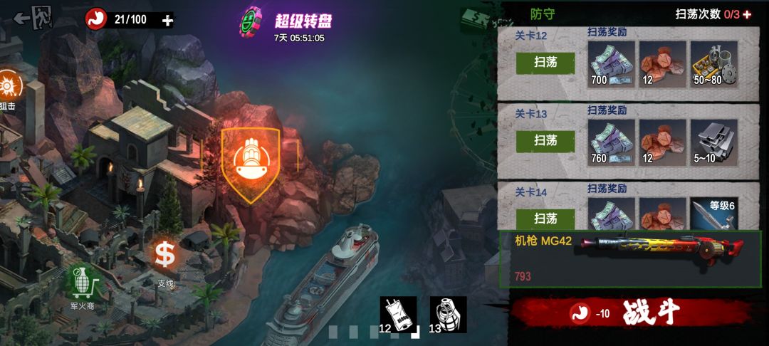 (主线、支线、boss、周挑战、防守关卡、狙击关卡)