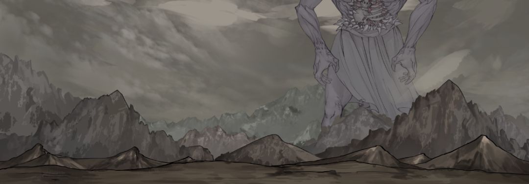 与此同时,脚下的大地正逐渐发出隆隆的哀鸣声。极目所尽,一座巨大的黑影,在群山之间缓缓站起。