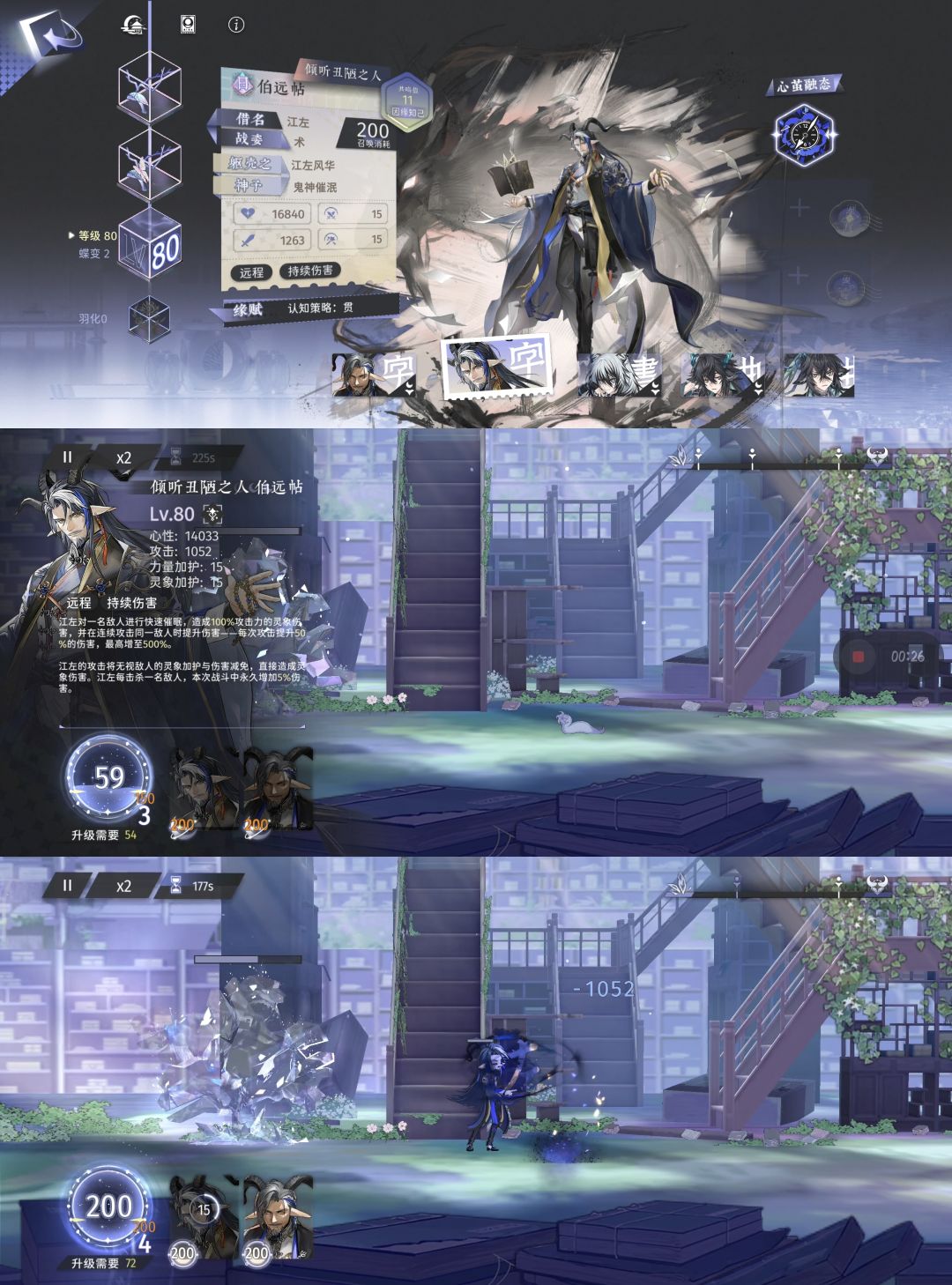 神蜕:玩叠伤的也没好到哪去,看似是“第一段附加100%伤害”,实际上200%的伤害对防护0的怪打出1479伤害。算下来,战斗内实际伤害739.5<战斗内面板攻击939<养成面板攻击1089(PS:我神蜕江左羽化4,有25%攻击加成、5%伤害加成。纯白板我看预览攻击是751)