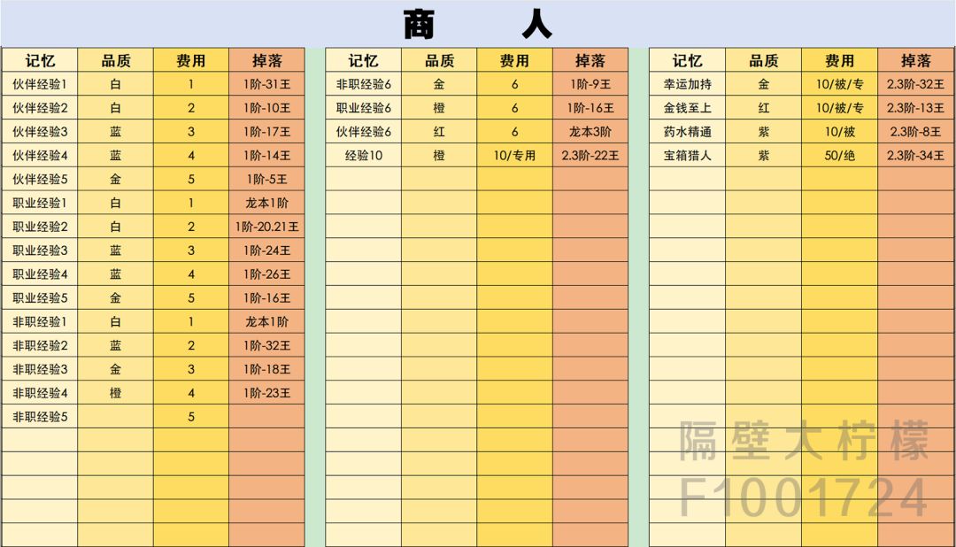 首先一转职业有23种,大部分记忆在一阶和龙本,部分在二阶。