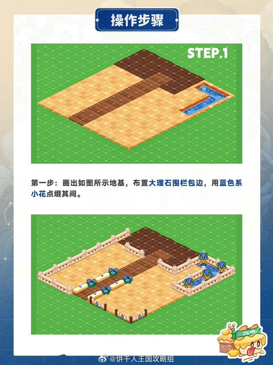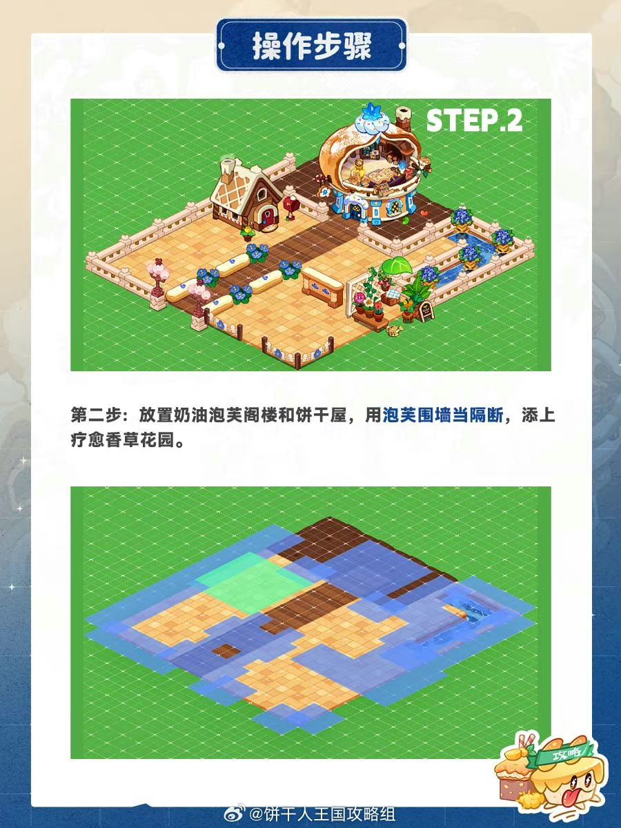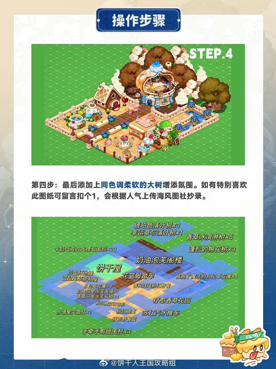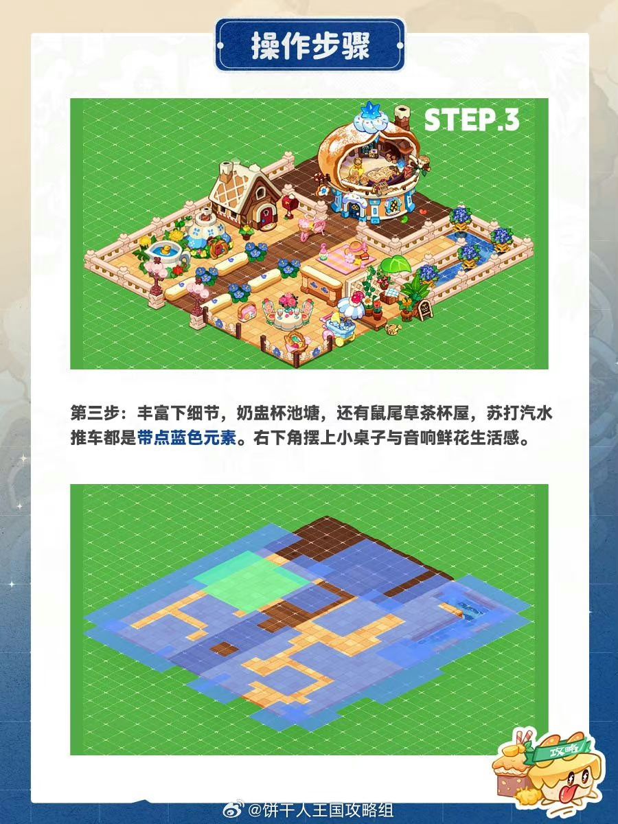 给超甜的奶油泡芙安排一间小居所,绵软香甜的色调点缀蓝色小花,清新柔软。占地不大可以安排在王国一隅,感受奶油泡芙的可爱吧