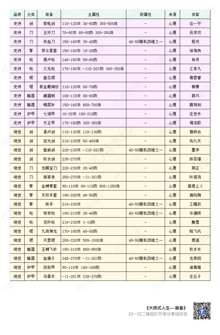 大侠式人生重置版心愿装备一览表
