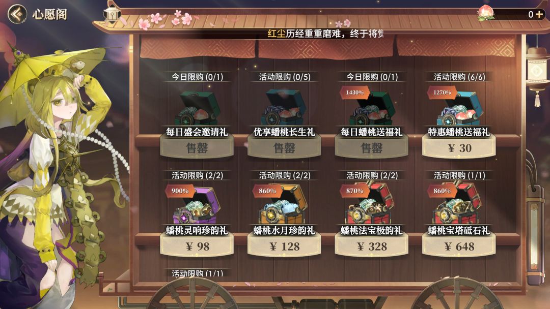 心愿阁中提供多种高折扣礼包可供选购,有需求的行者们千万不要错过哦!