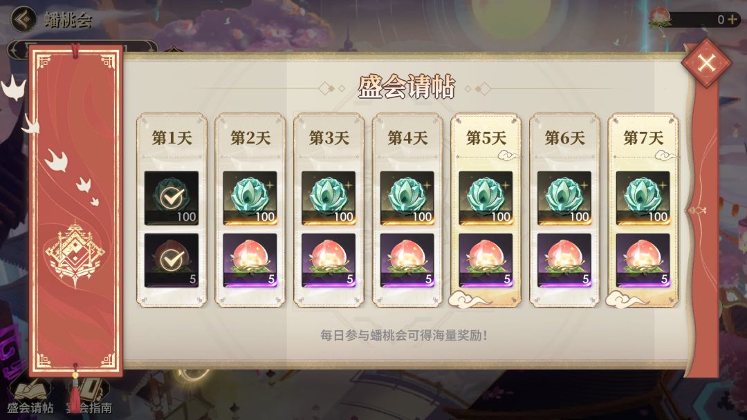 蟠桃会活动期间,每日登录即可签到领取玉宝相和紫纹蟠桃奖励!