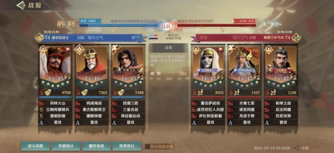 武田信玄的四维属性并不十分突出,兵种方面是以骑兵和盾兵为主,决胜以后每回合有概率为自身解除缴械状态,这样就能保证发动更多的普攻,再配合自身突击技能,可以打出高频率的沉默效果。
