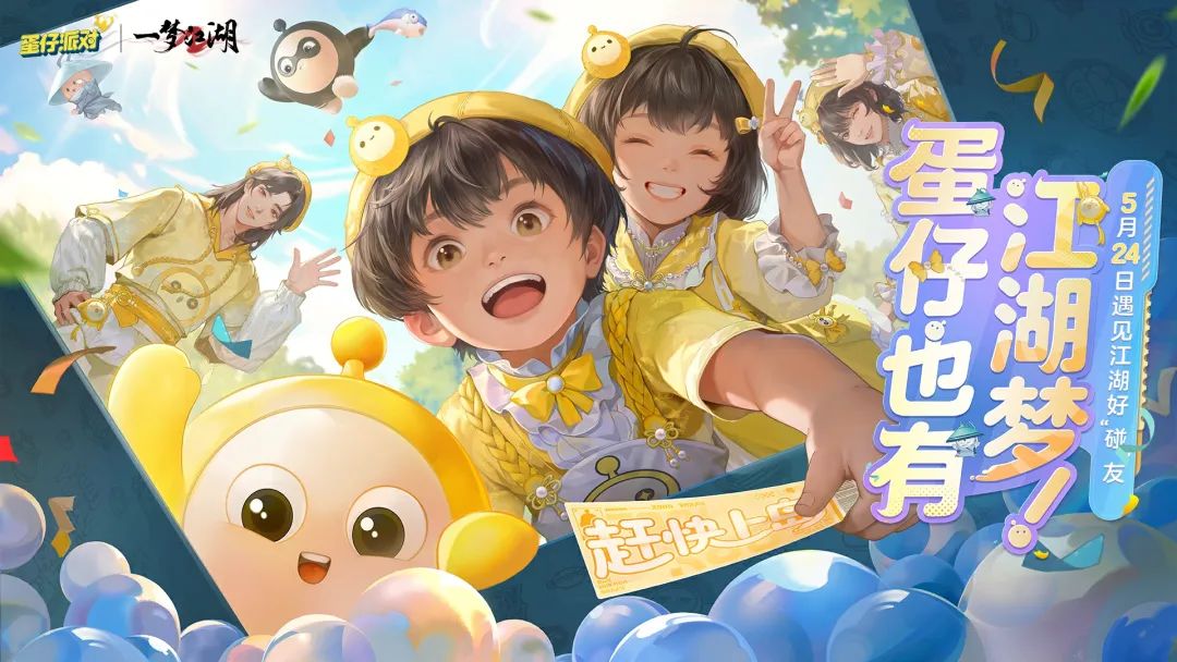 5月24日,一梦江湖携手《蛋仔派对》,童趣节全新主题系列外观即将上线!这个童趣节,与结义亲友穿上新装,一起期待新的江湖冒险!