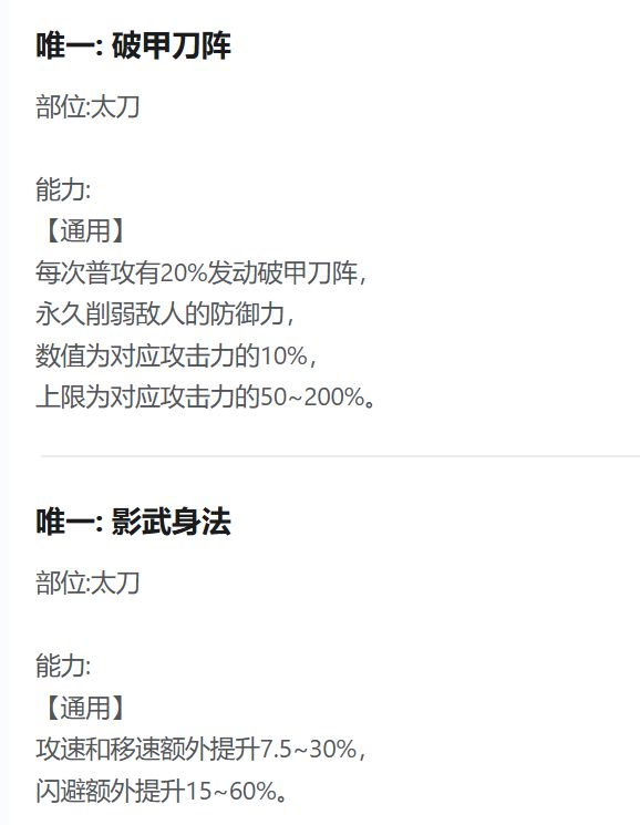 霸剑极大幅度的避免受击僵直,普攻提升加成也十分强力,持续输出能力极强。在武器都很好,能破甲的情况下,霸剑的输出远高于破甲太刀