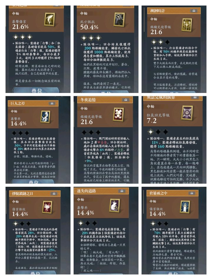 忘却前夜命轮推荐(只推荐常驻和商店获取)