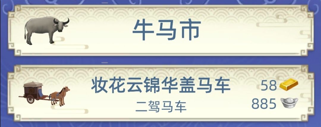 妆花云锦华盖马车是六驾马车,但我存进钱柜之后就变成二驾马车了,图片也变了。从钱柜里拿出来也还是二驾。