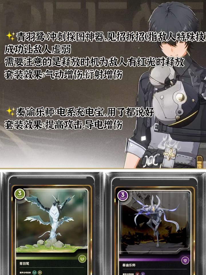 ✨青羽鹭:冲刺探图神器,见招拆招(指敌人特殊技),成功让敌人虚弱