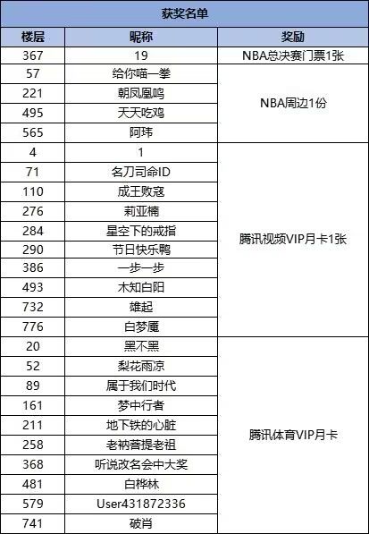 6.“NBA总决赛门票”为2024年6月24日NBA第七场总决赛观赛资格。获奖后请填写正确联系方式以便发放奖品。如因联系方式无效、无法联系或无法现场观赛导致奖品失效,不予退换。若2024年总决赛提前结束,门票将兑换为2025年总决赛第一场观赛资格。