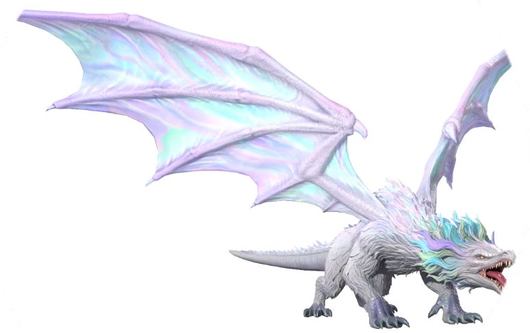 彩虹龙是能够驾驭气系魔法的森林龙,它们的鳞片上长着厚厚的白色毛皮,在阳光的照射下,展现出彩虹般耀眼的光芒。它能通过操纵风来进攻和防御,翱翔在阿维利森林上空以保卫这片家园。